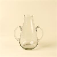Miro Glass Vase M, Clear, Decorative Vase with Vintage Charm and Sustainable Roots Add a sculptural moment to your shelves or tabletop with this handcrafted decorative vase. Inspired by the shape of ancient urns, it features a rounded body, flared neck, and playful dual handles that bring a whimsical twist to a timeless form.