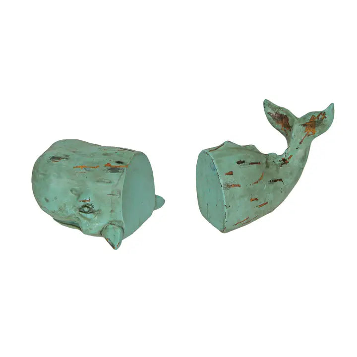 Resin Verdigris Whale Bookends