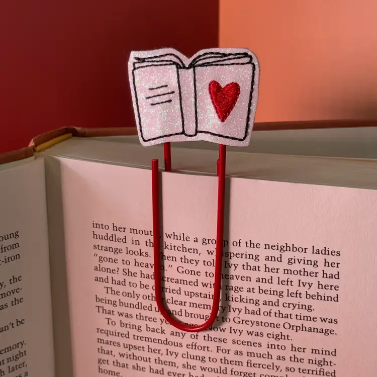 Beautiful vinyl feature attached to a big paperclip bookmark. Great for journals, calendars, and books