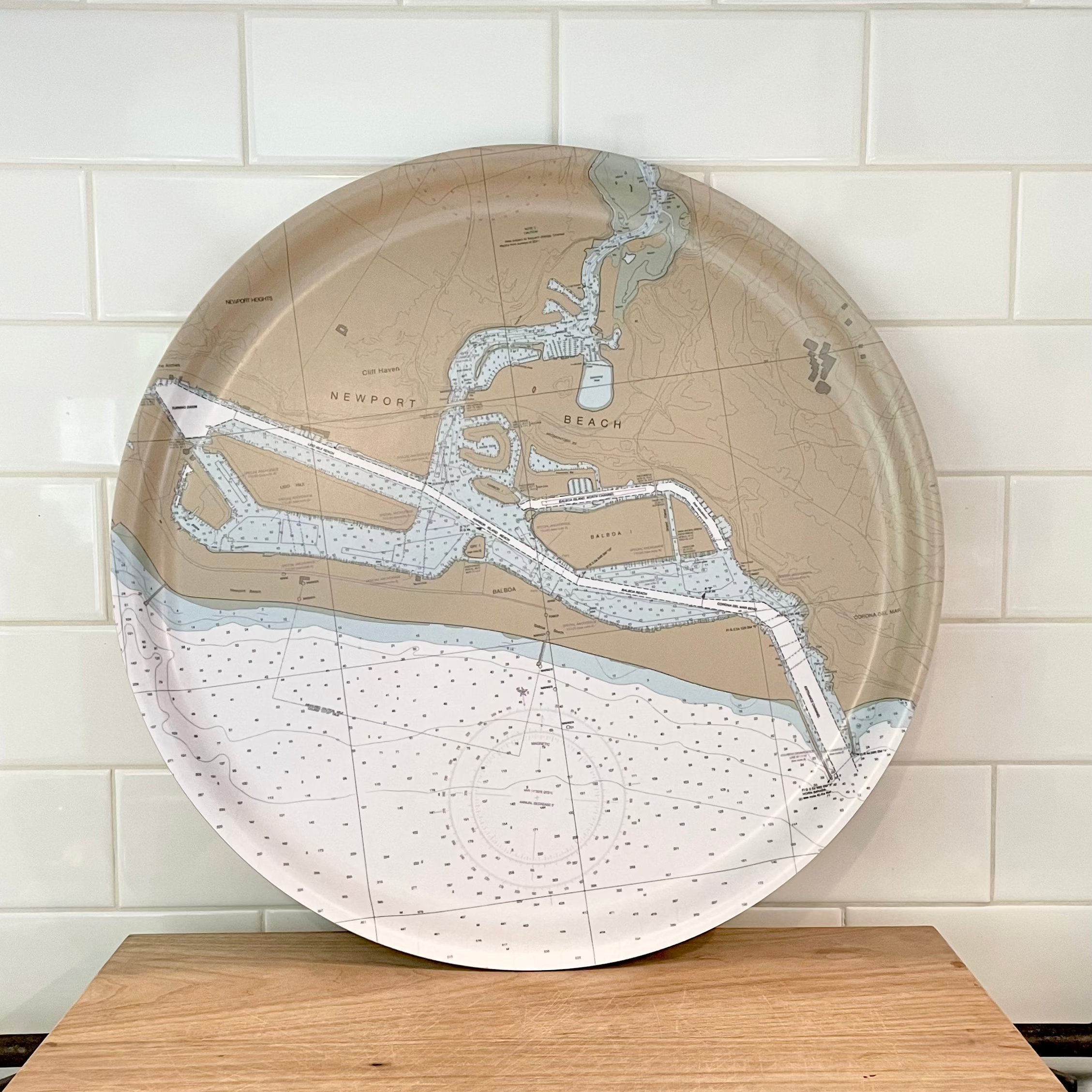 D California Newport Beach Map 15.7" round tray