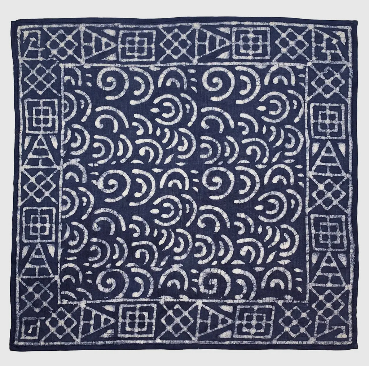PAR Blockprint Bandana, Indigo Spirals/Squares