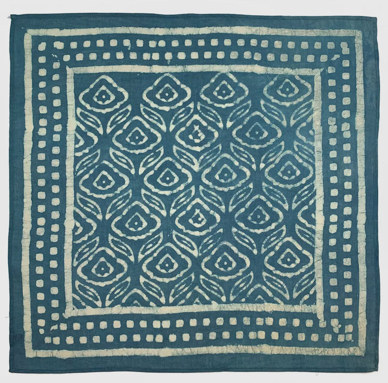 PAR Blockprint Bandana, Indigo Floral leaves square border