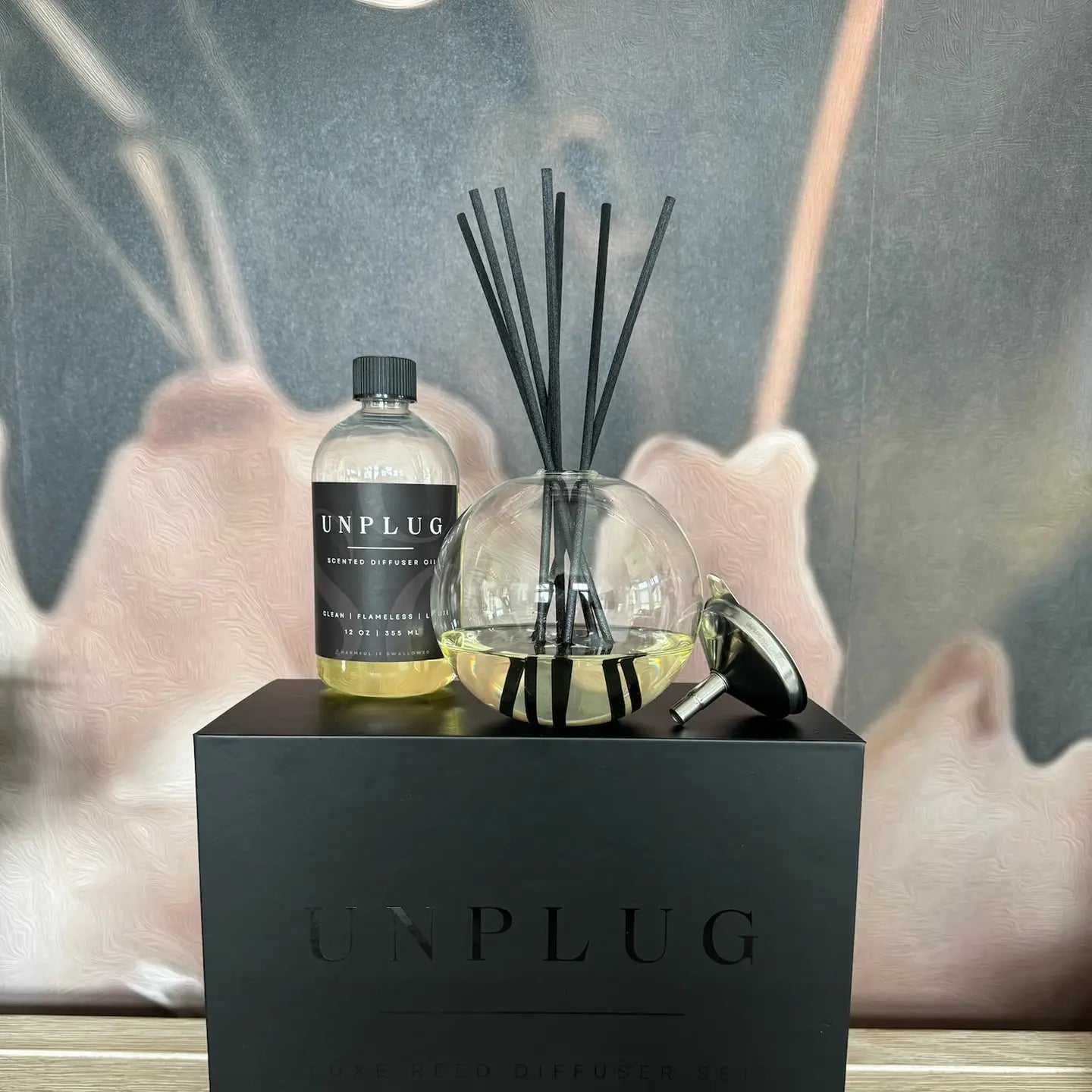 -12oz of Premium Diffuser Oil: a rich, long-lasting aroma that fills your room with a sophisticated scent for up to 6 months.