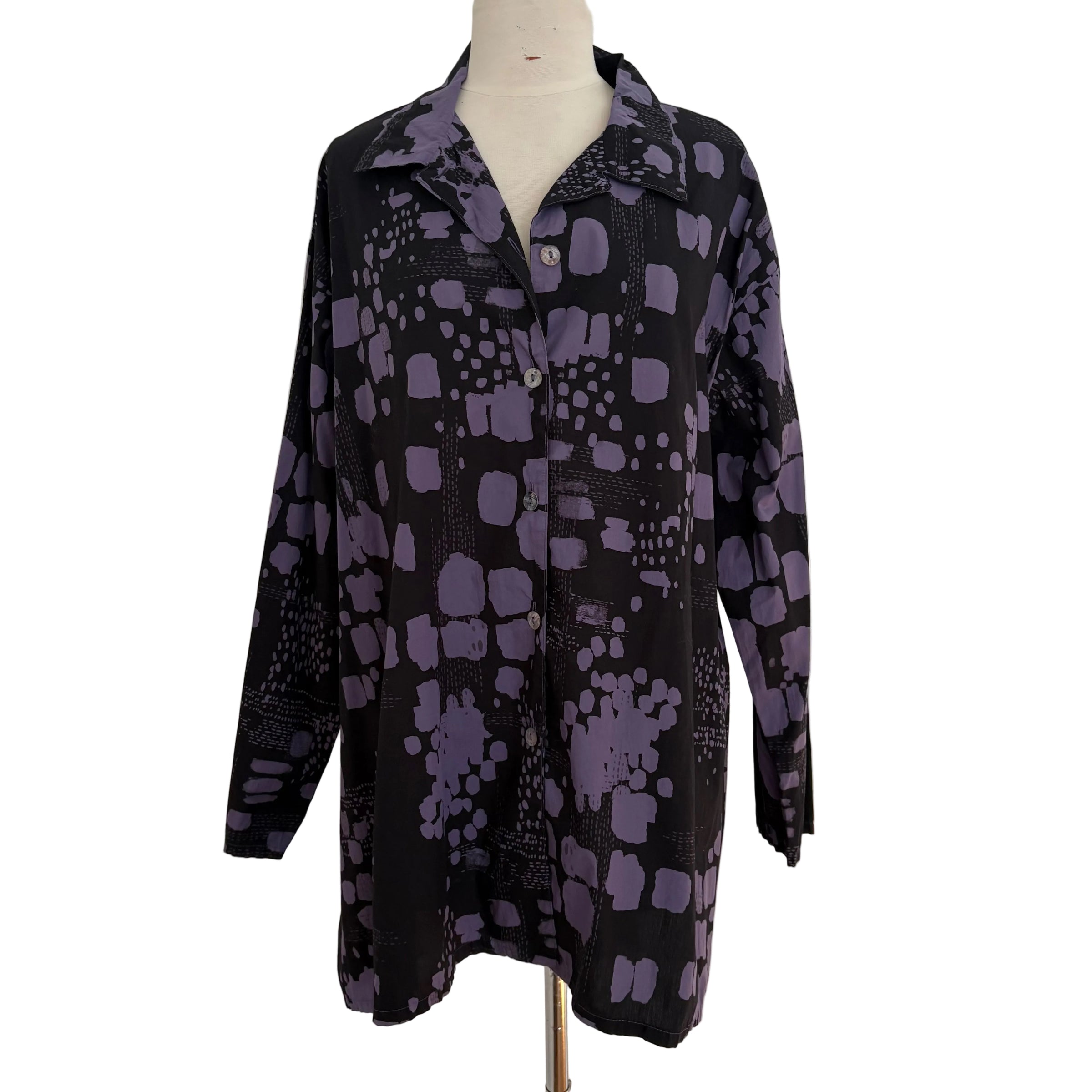 Collared Button Down A-Line Blouse, Long Sleeve with Cuff