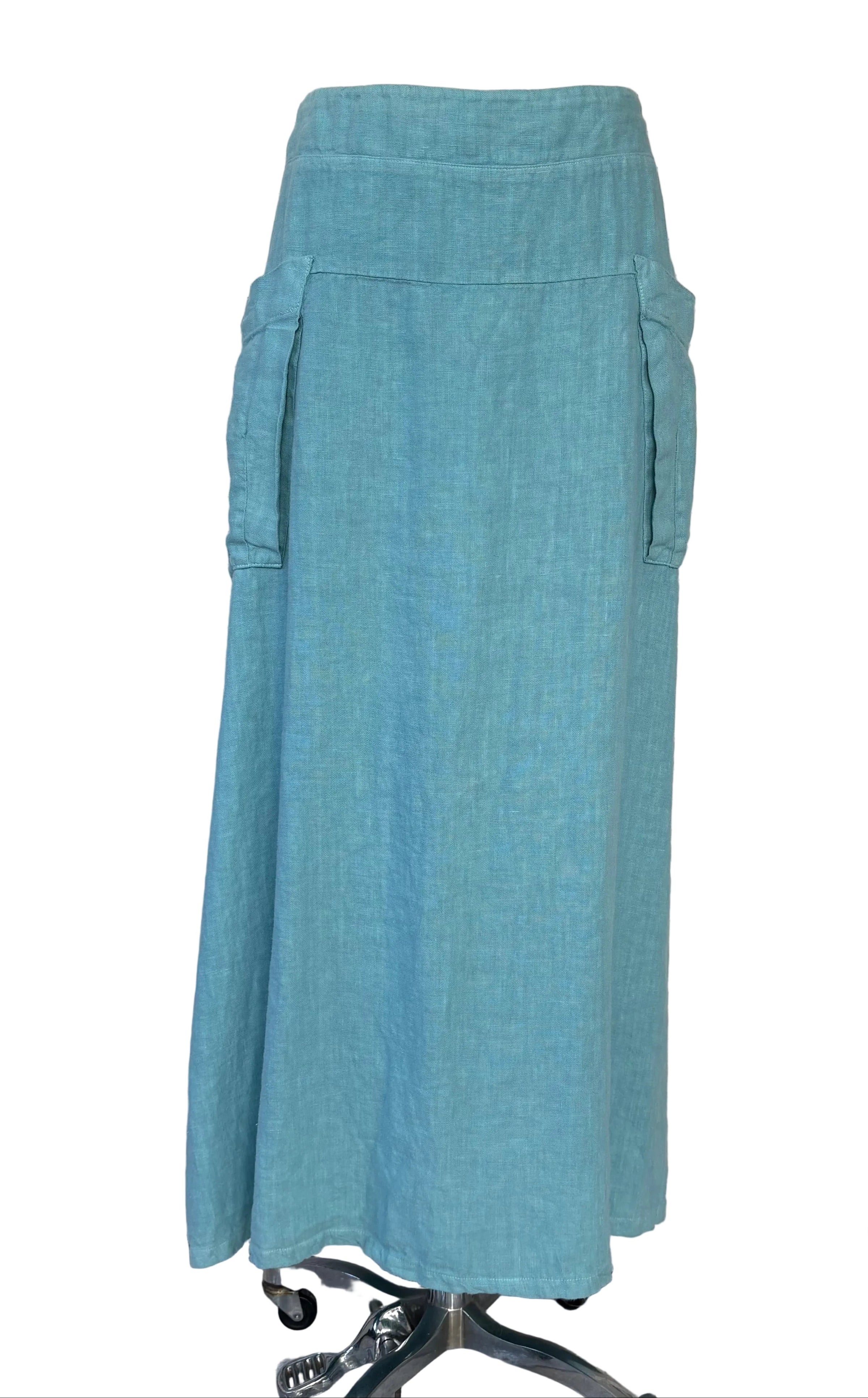 Cut Loose French Blue Linen Long Skirt W/ Pockets