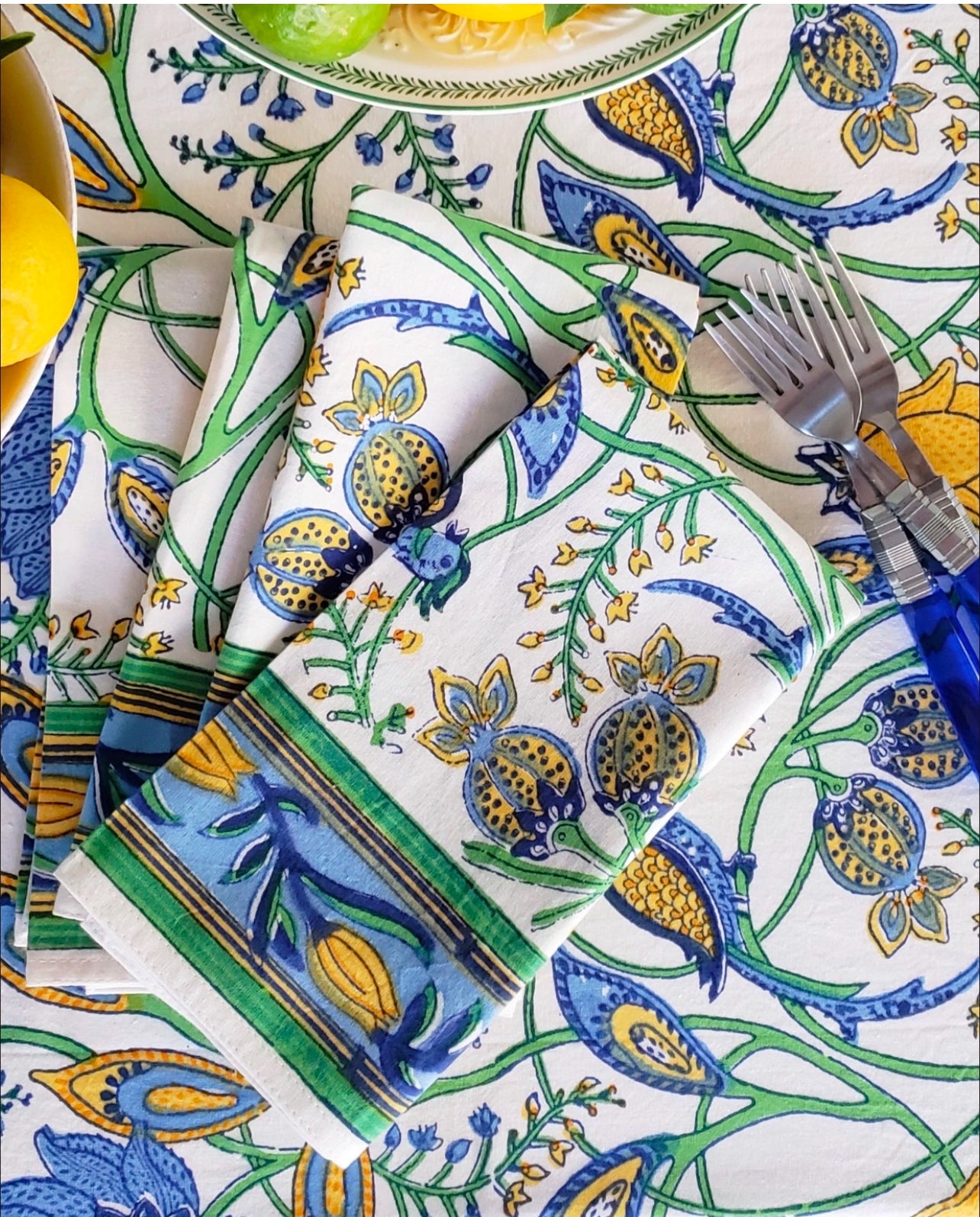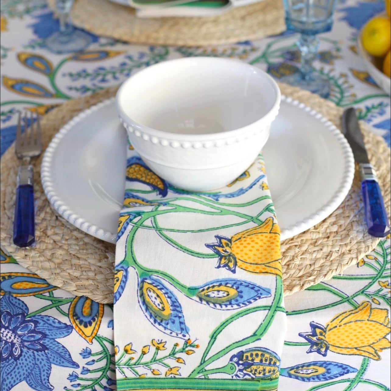 Create a unique table setting with our hand block-printed napkins in fresh, updated riffs on classic Indian designs.