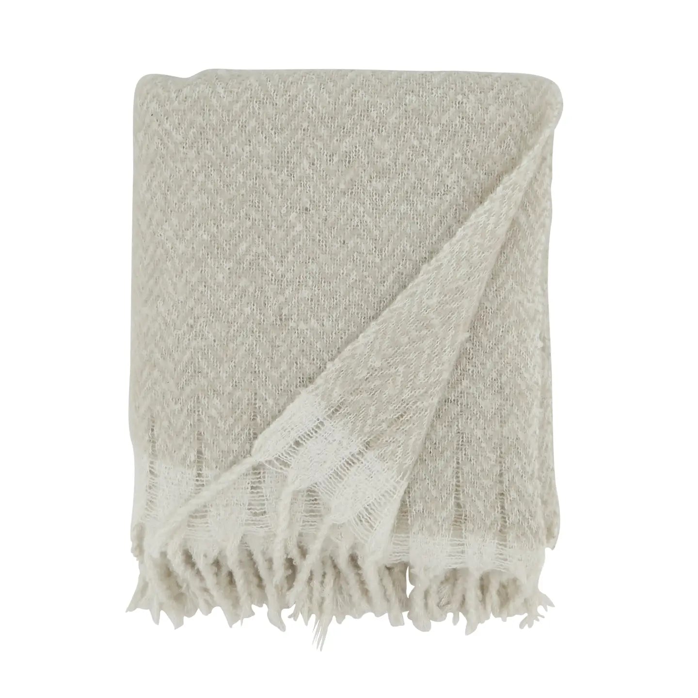 Add a touch of elegance to your space with this Chic Faux Mohair Herringbone Fringed Throw. This luxurious throw features a sophisticated herringbone pattern, crafted from sumptuously soft faux mohair. Its delicate fringes complete the look, making it the epitome of style and comfort