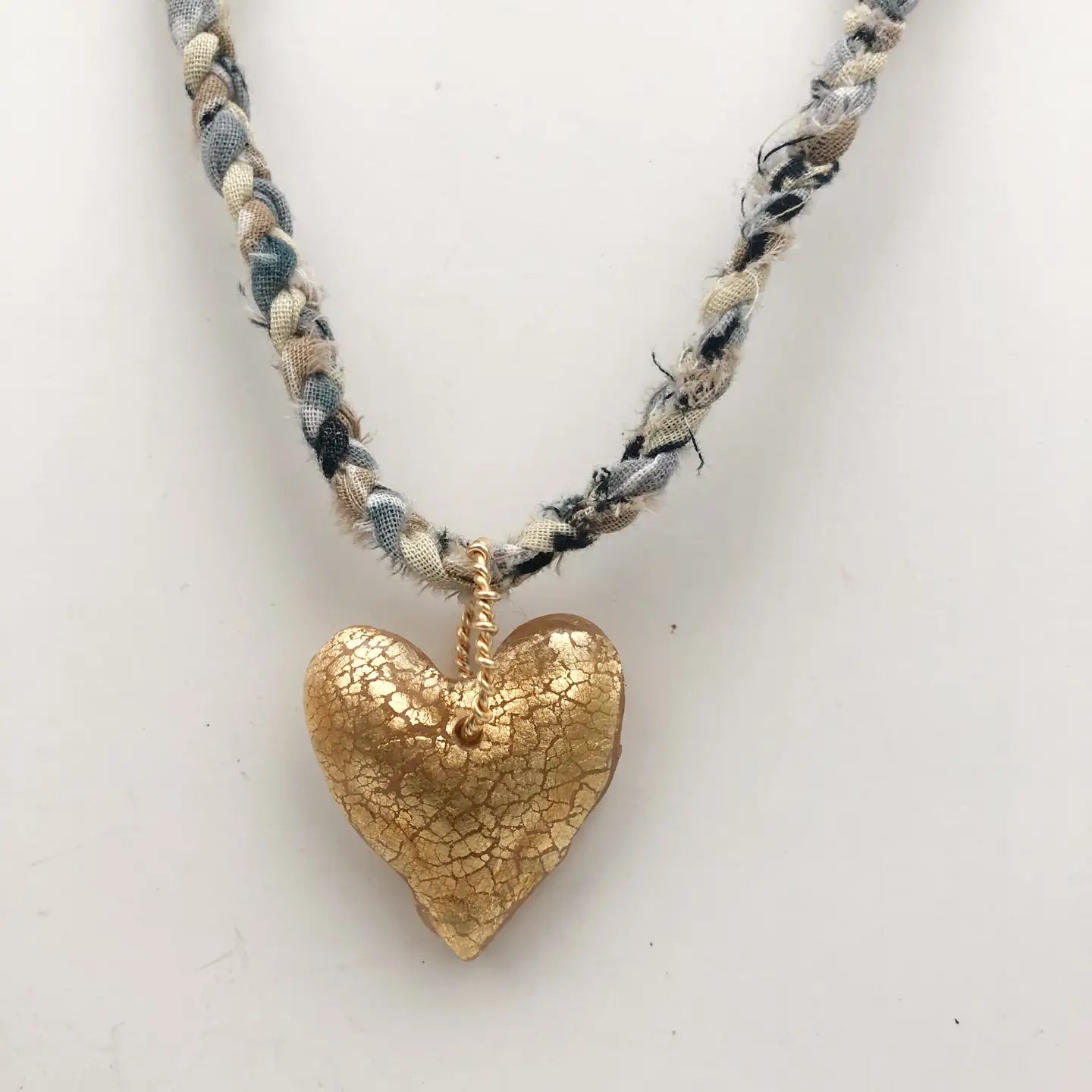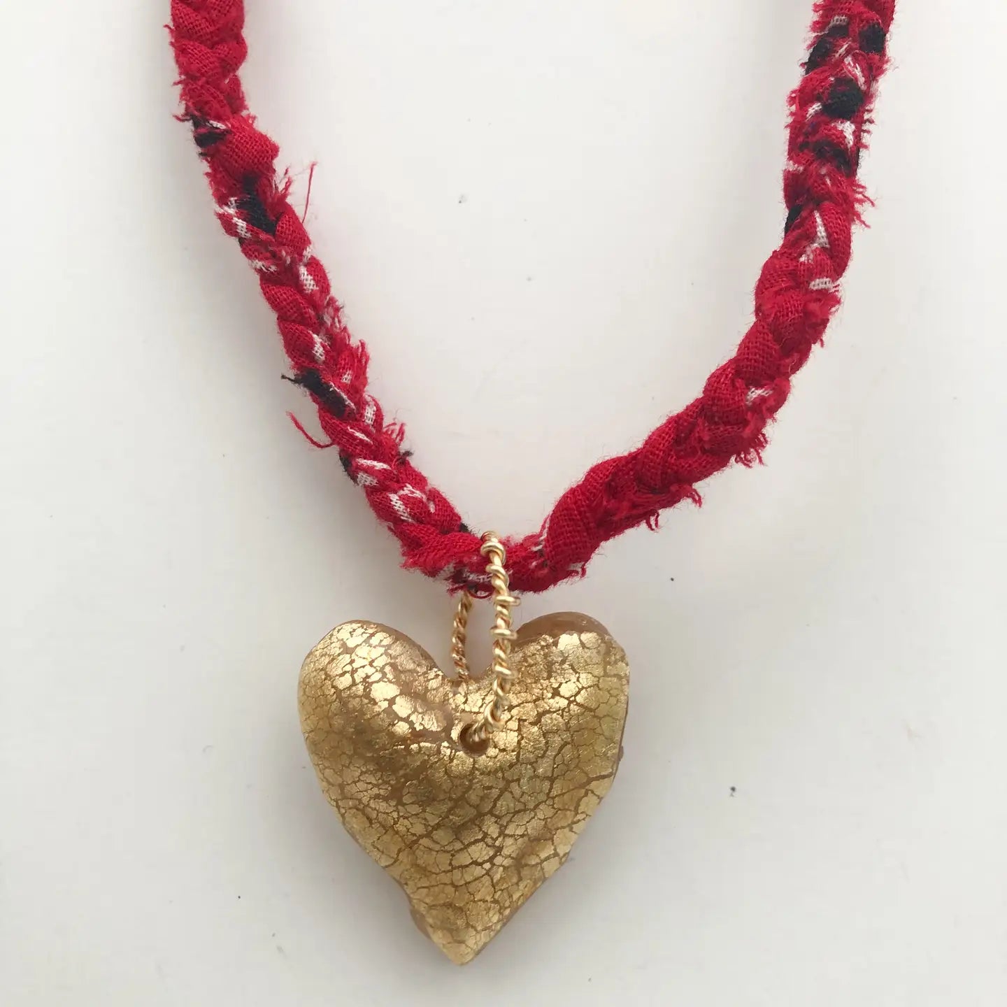 100% Cotton Bandana Necklace Handmade With Resin Coated Clay Heart