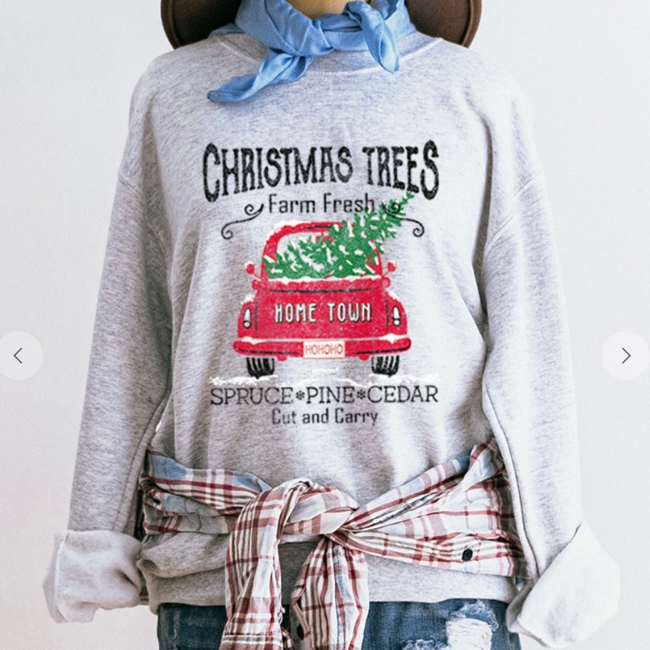 Heather Gray Christmas Tree Farm Crew Neck Sweatshirt