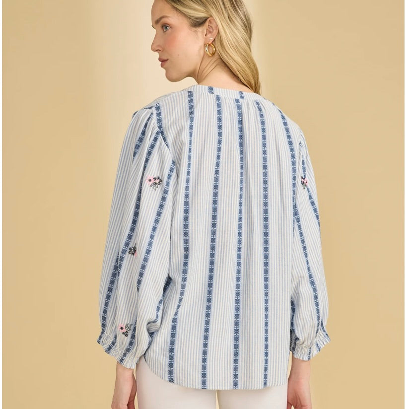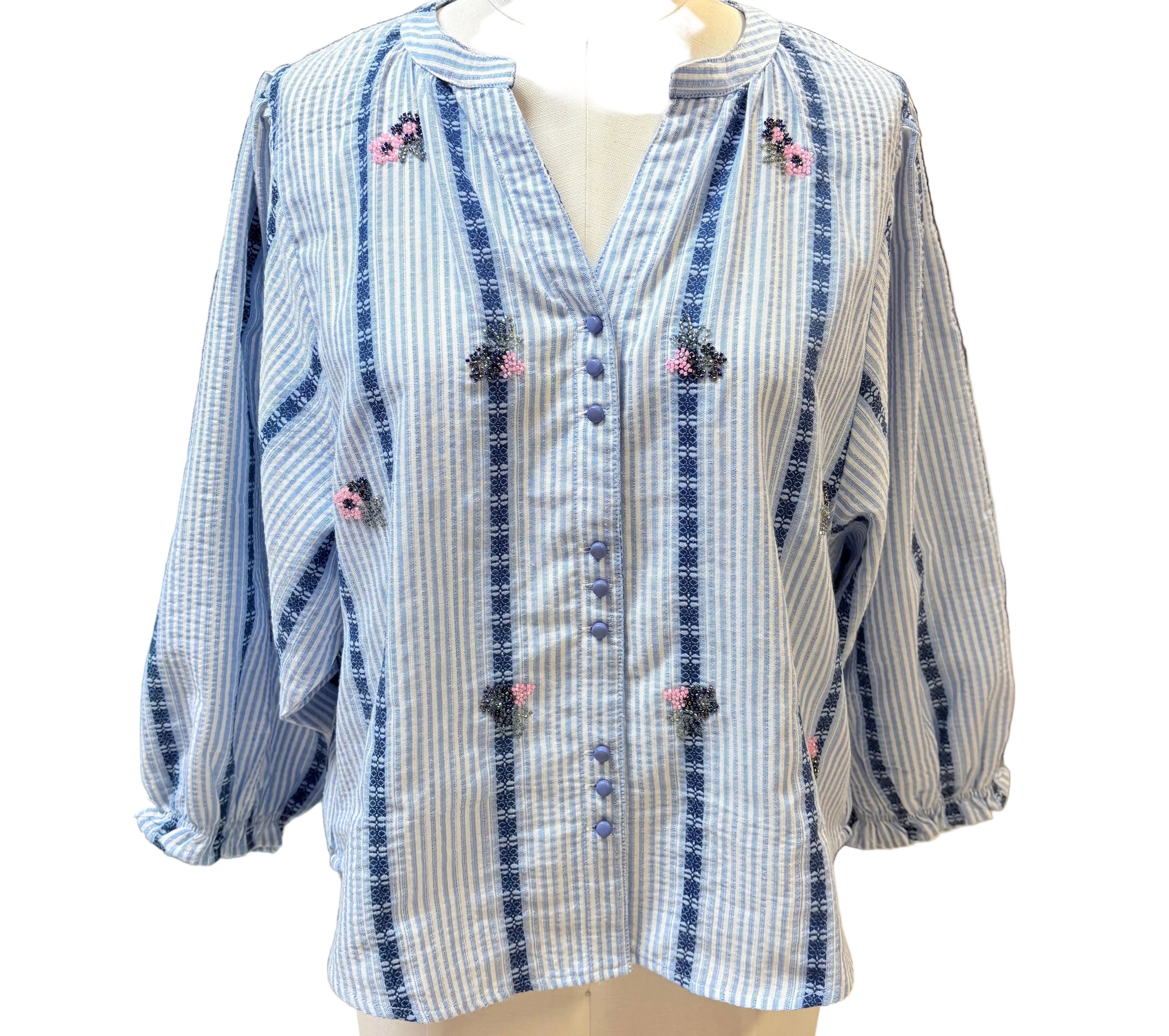 CC FDJ Beaded Blue Stripe Blouse