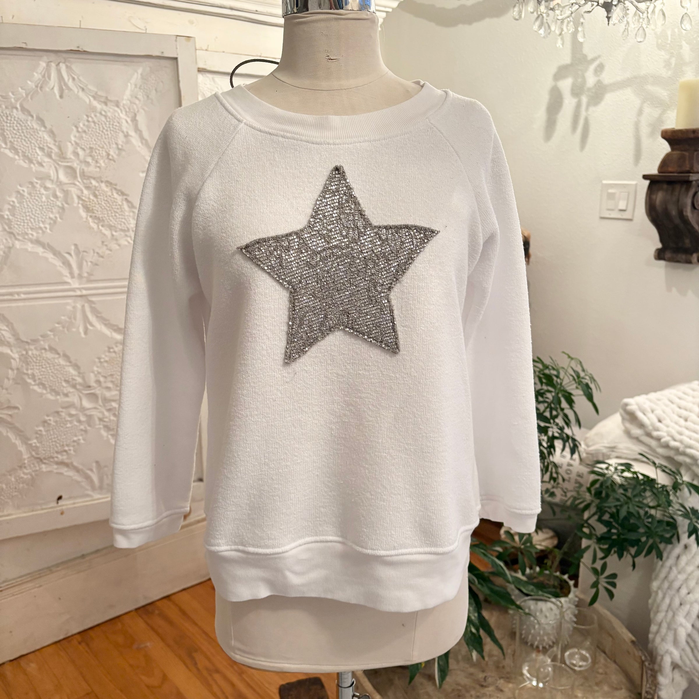 Eden's 6th Day Silver Glitter Star on Sweater like fleece sweatshirt