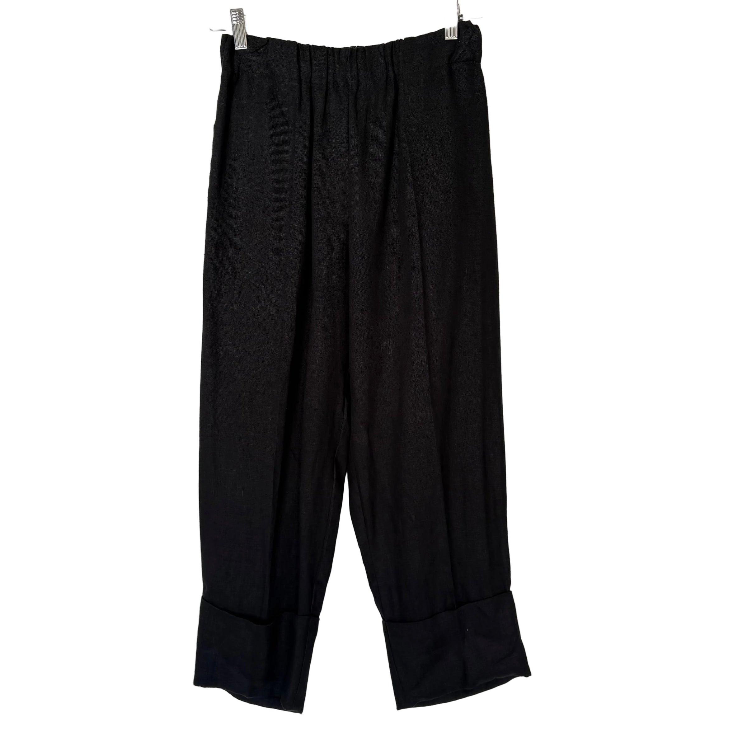 Crown Linen Designs Black Linen Cuffed Pant with Pockets