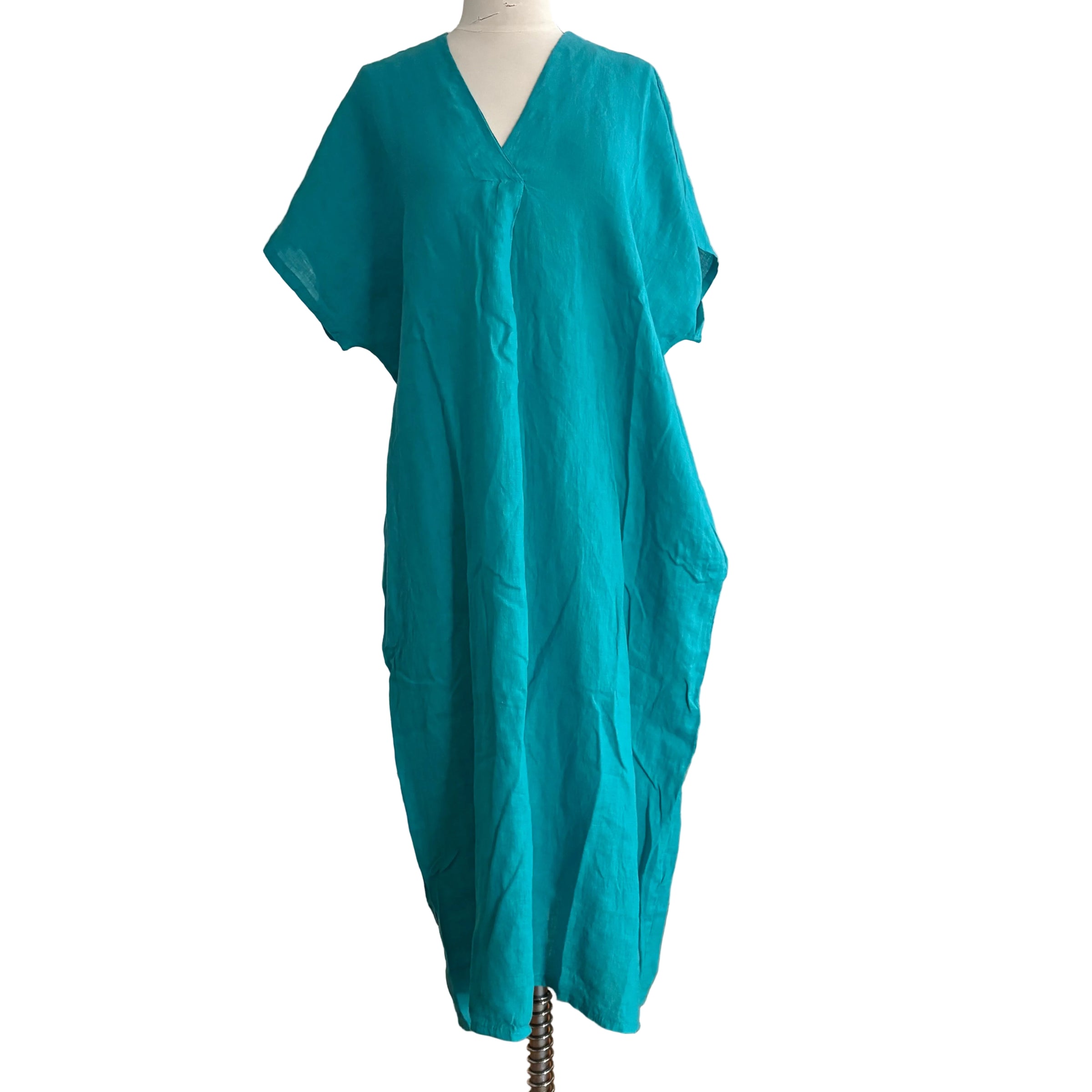 V Neck Kaftan Dress, Teal Green