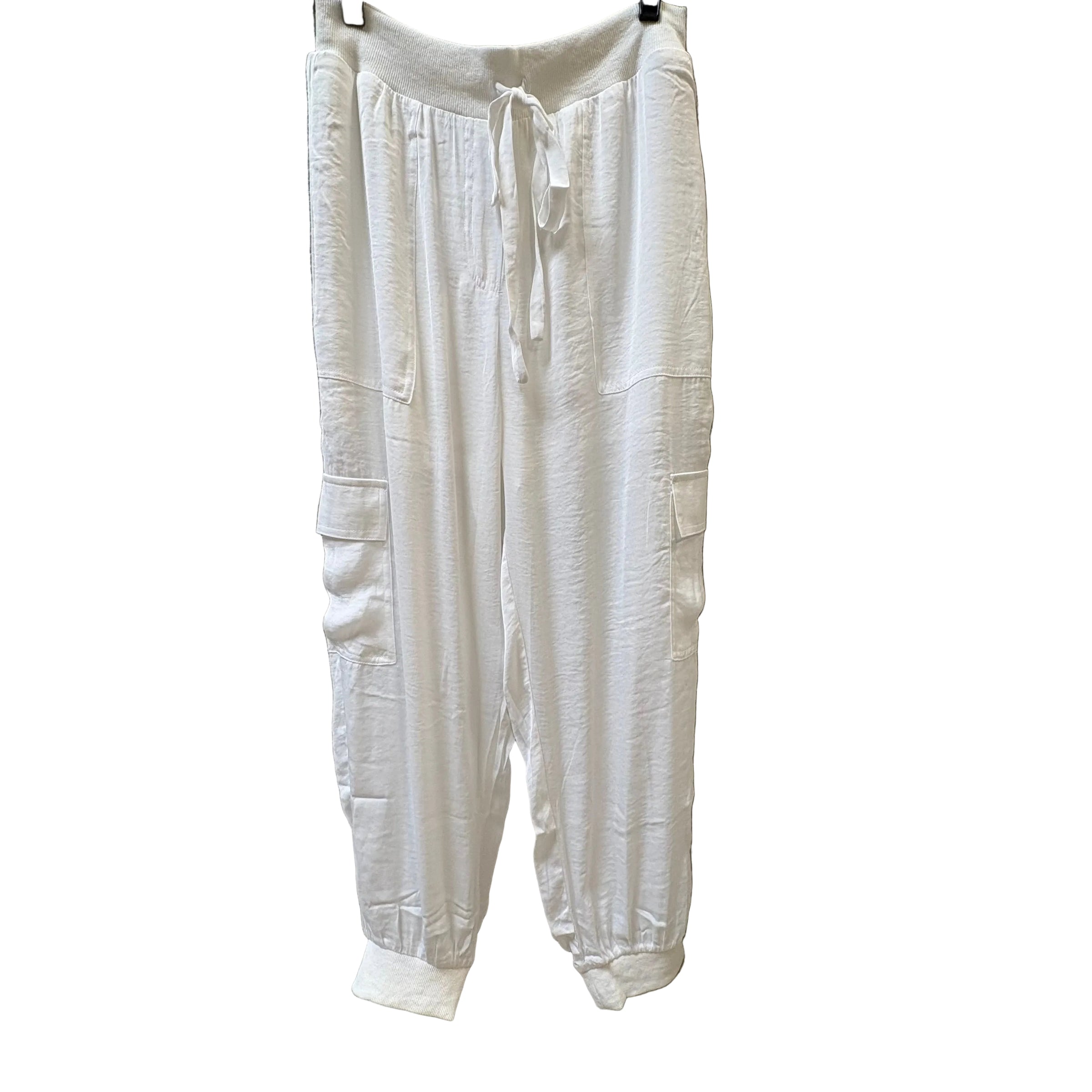 White Jogger Pant with Drawstring waist, Lined to mid thigh