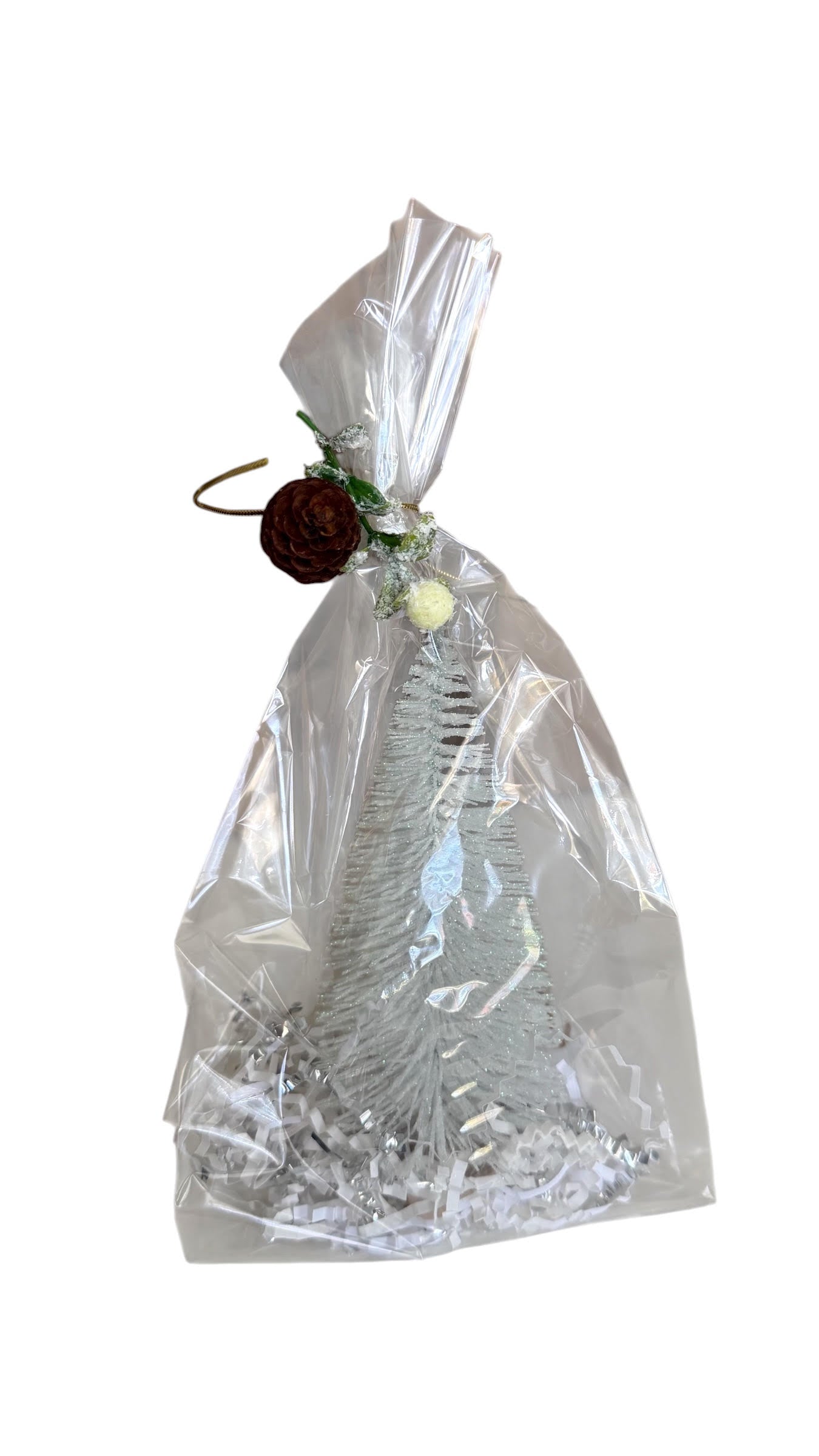 Comes gift wrapped in cello bag with gold tie and pinecones or without gift package.